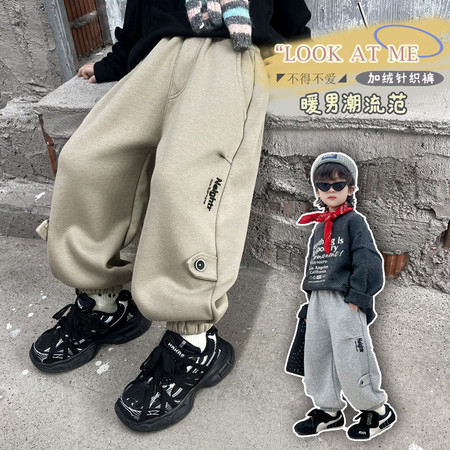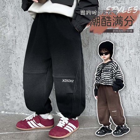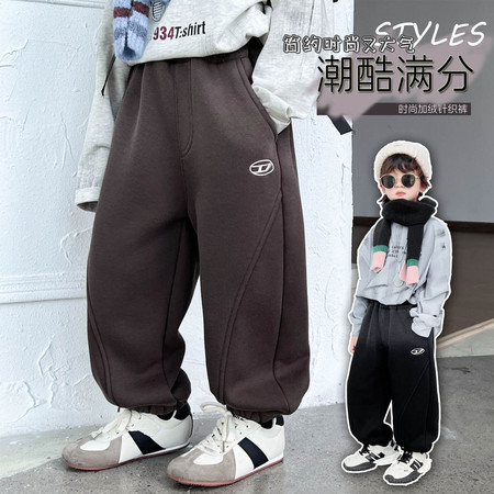 仔*也收藏“字母拉条加绒针织裤-模特图”