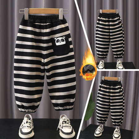 1*3收藏“后袋熊猫条纹加绒裤-模特图”