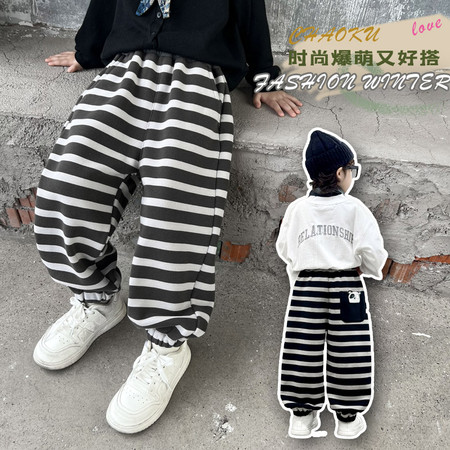 可*话将商品“后袋熊猫条纹加绒裤-模特图”发布到淘宝