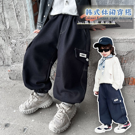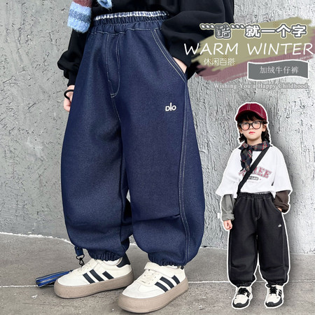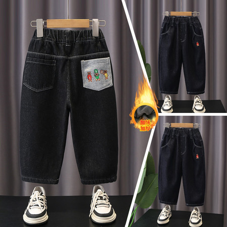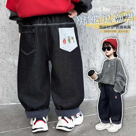 1*2下载视频“后袋三只熊加绒牛仔裤-模特图”